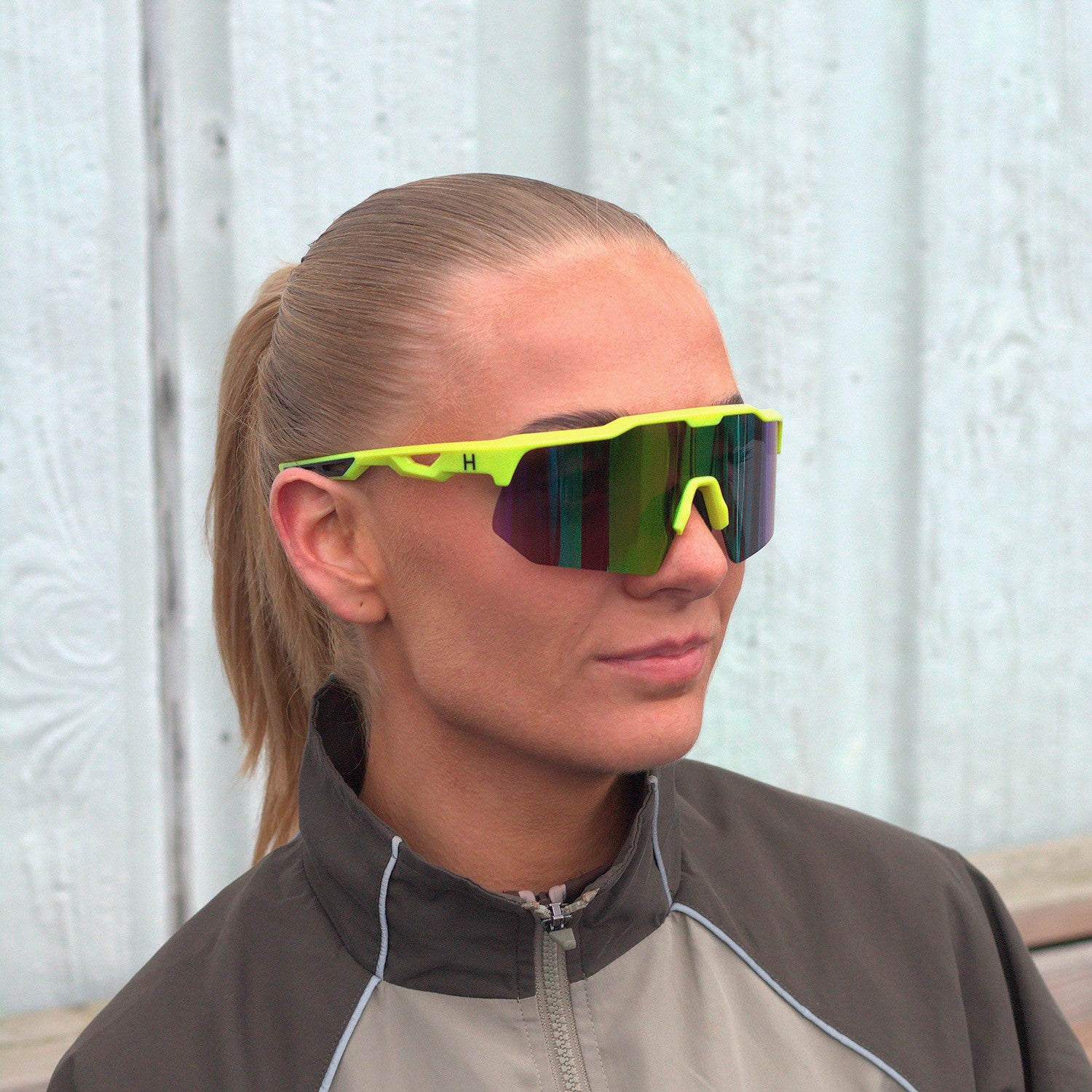 Valenzano Gold are green sports glasses with UV400 and gold glass with a mirror effect. The temples of the sports glasses are in a beautiful matt green color with a small "H" in gold on the sides. Perfect for the run, bike ride or a trip on the padel court. A soft glasses case in gray is included, which can also be used as a cleaning cloth.